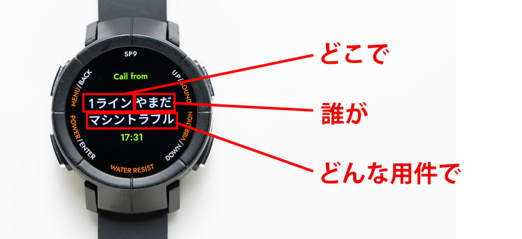 新型 腕時計受信機 SP9はひらがな/カタカナ表示で呼び出し先と用件が一目でわかります!